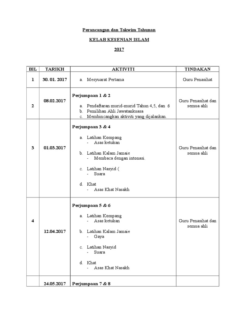 Perancangan Dan Takwim Tahunan Kelab Kesenian Islam Pdf